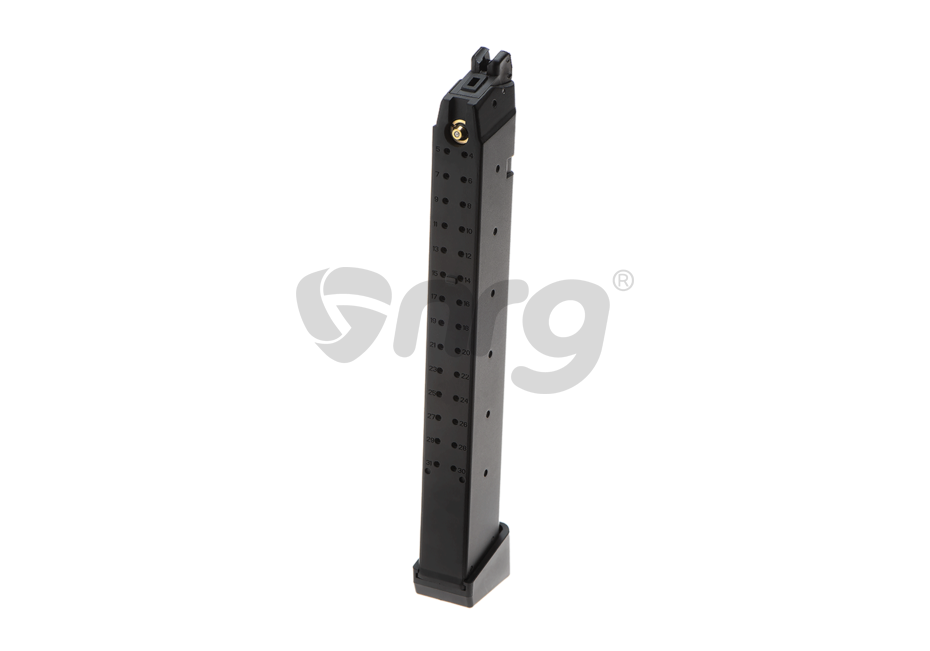 Incarcator produs de catre Vorsk pentru platforma Glock 17/18. Acest incarcator poate fi folosit cu gaz Green Gas sau alte variante de gaz cu propietati asemanatoare.Este construit din metal iar gura de alimentare cu bile este din plastic.