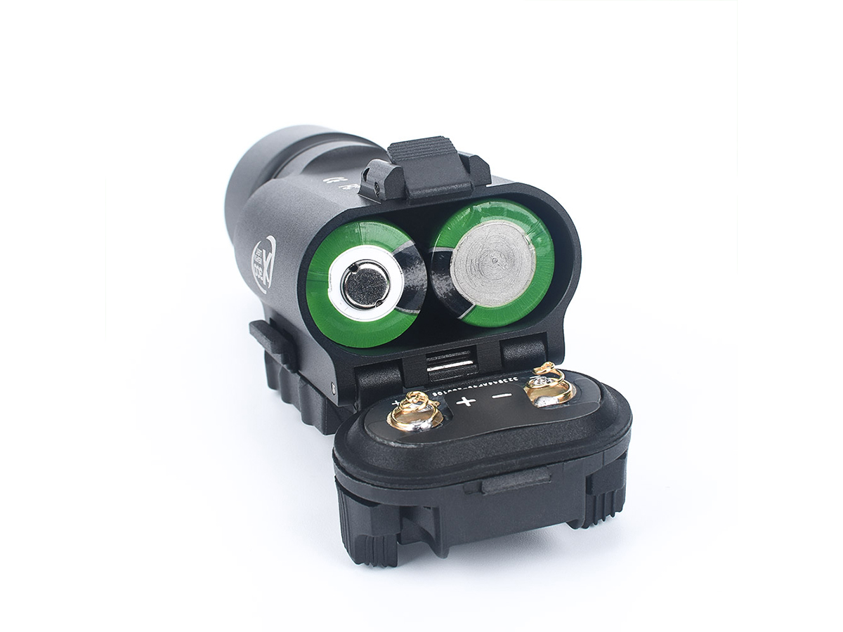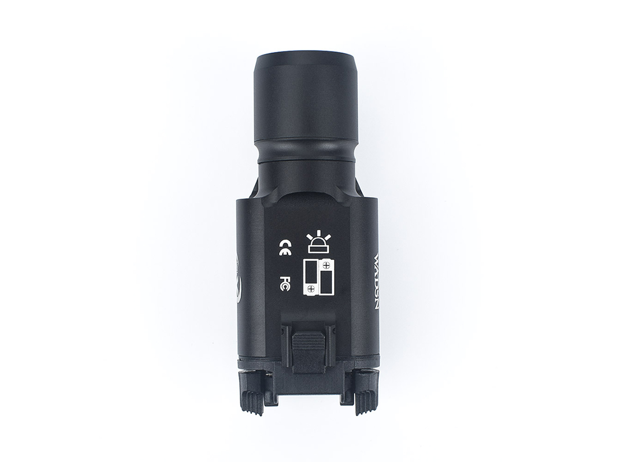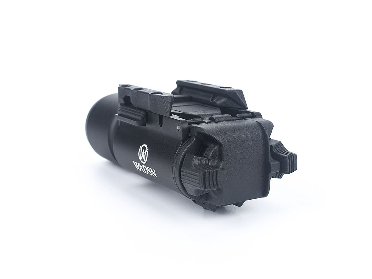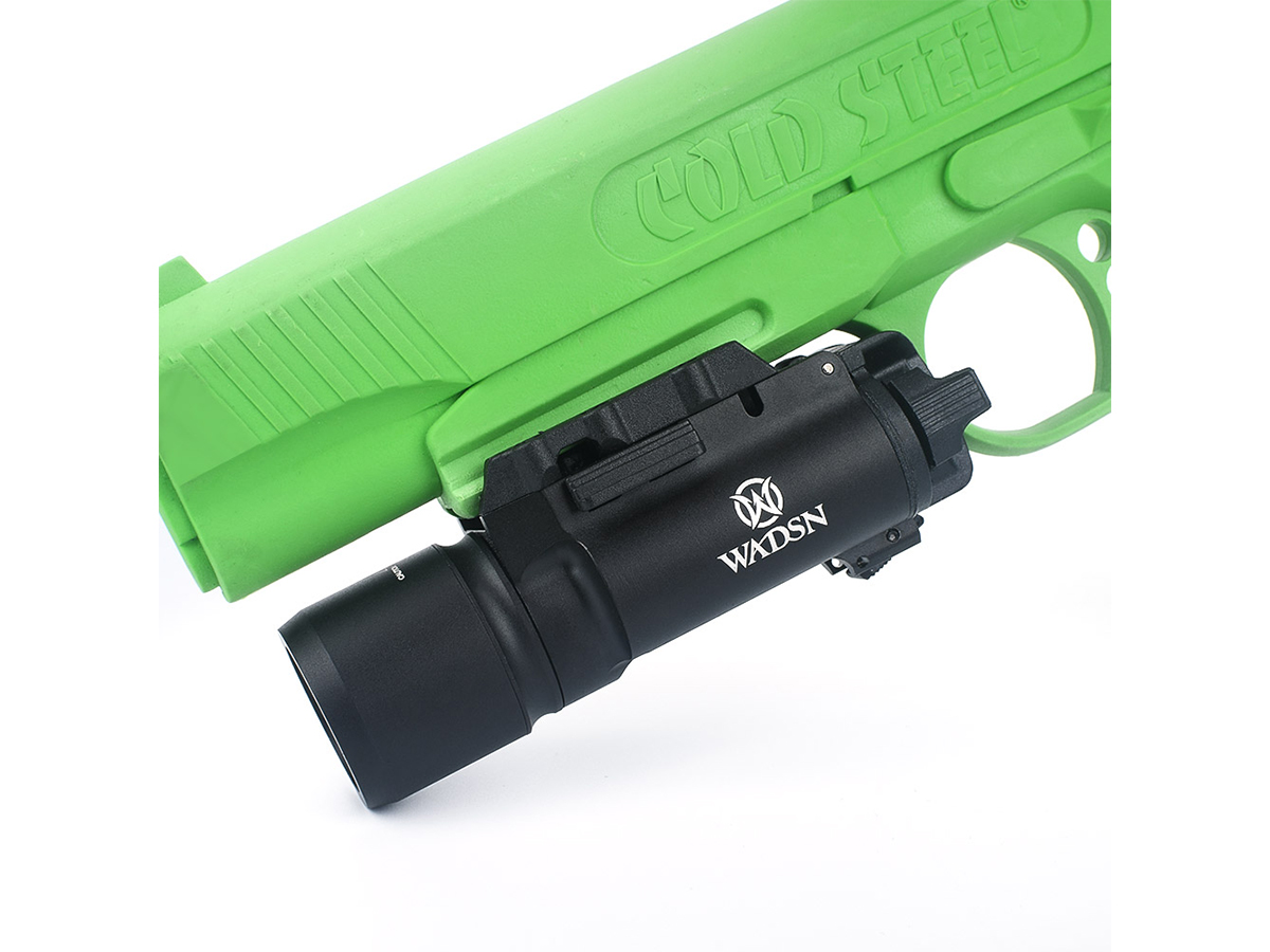 Lanterna tactica X300 oferita de WADSN este realizata din aluminiu, cu anumite elemente precum butoale si cleme, realizate din plastic ABS. Se poate spune ca acest model de lanterna este destinat pistoalelor deoarece in partea din spate exista comanda cu dubla pozitie ce poate fi actionata usor cu degetul aratator. Acest dispozitiv functioneaza cu 2 baterii CR123A ce pot fi montate prin spate. Se poate monta foarte usor pe sine picatinny cu ajutorul clapetei laterale ce trebuie actionata simultan pe ambele parti ale dispozitivului.