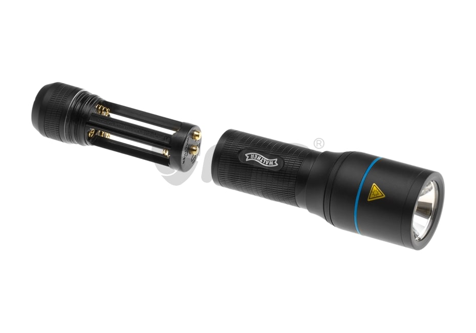 Lanterna tactica marca Walther model Pro PL80. Lanterna este fabricata din aliaje de aluminiu, obtinand astfel o greutate scazuta dar fara a sacrifica rezistenta. Datorita becului puternic cu care este dotata aceasta lanterna, se poate genera o intensitate luminica de pana la 600 de lumeni. Becul este protejat de o sticla speciala, capabila sa reziste la socuri puternice si la zgarieturi. Capacele acestei lanterne sunt asigurate de garnituri din cauciuc pentru a impiedica infiltrarea apei in interior.