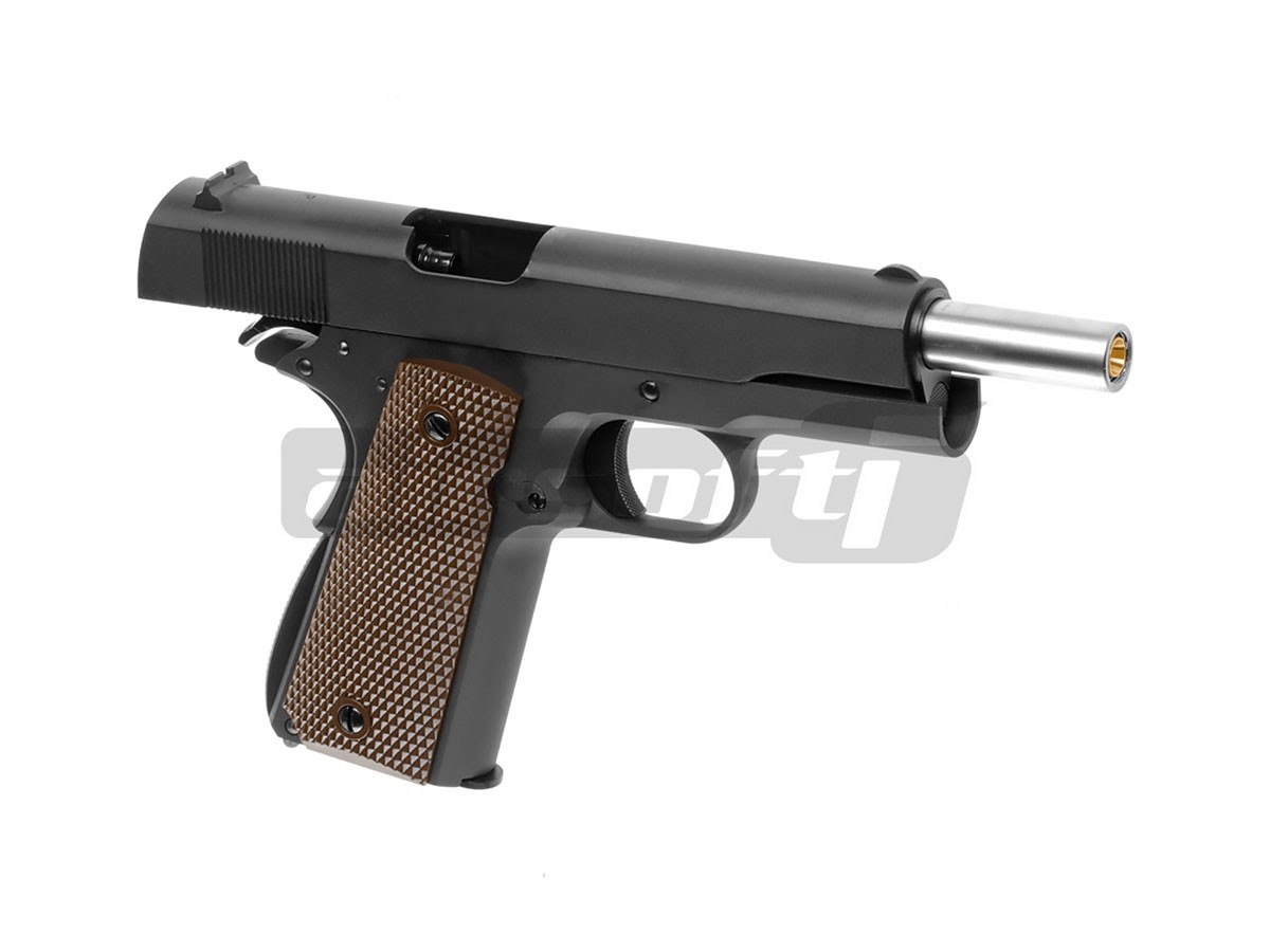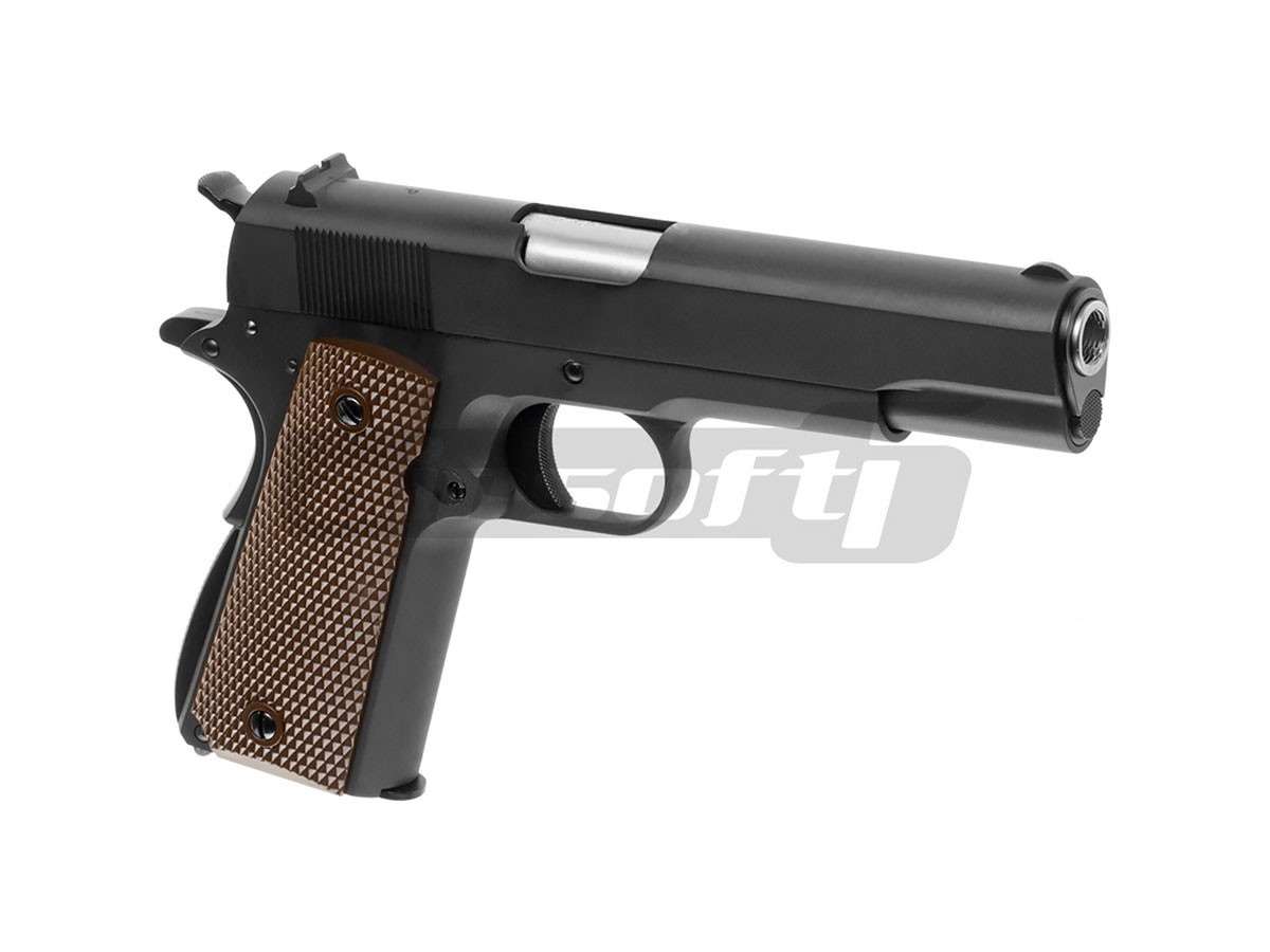 Replica de airsoft Colt 1911 fabricat de WE este copie 1:1 cu arma reala. Constructia este din metal fapt de ofera o senzatie specifica manuirii unei arme reale. Functionalitatea replicii este intocmai cu autenticul 1911. Efectul de recul in momentul actionarii pistolului este puternic, contribuind la nota de autenticitate a acestei replici de airsoft.