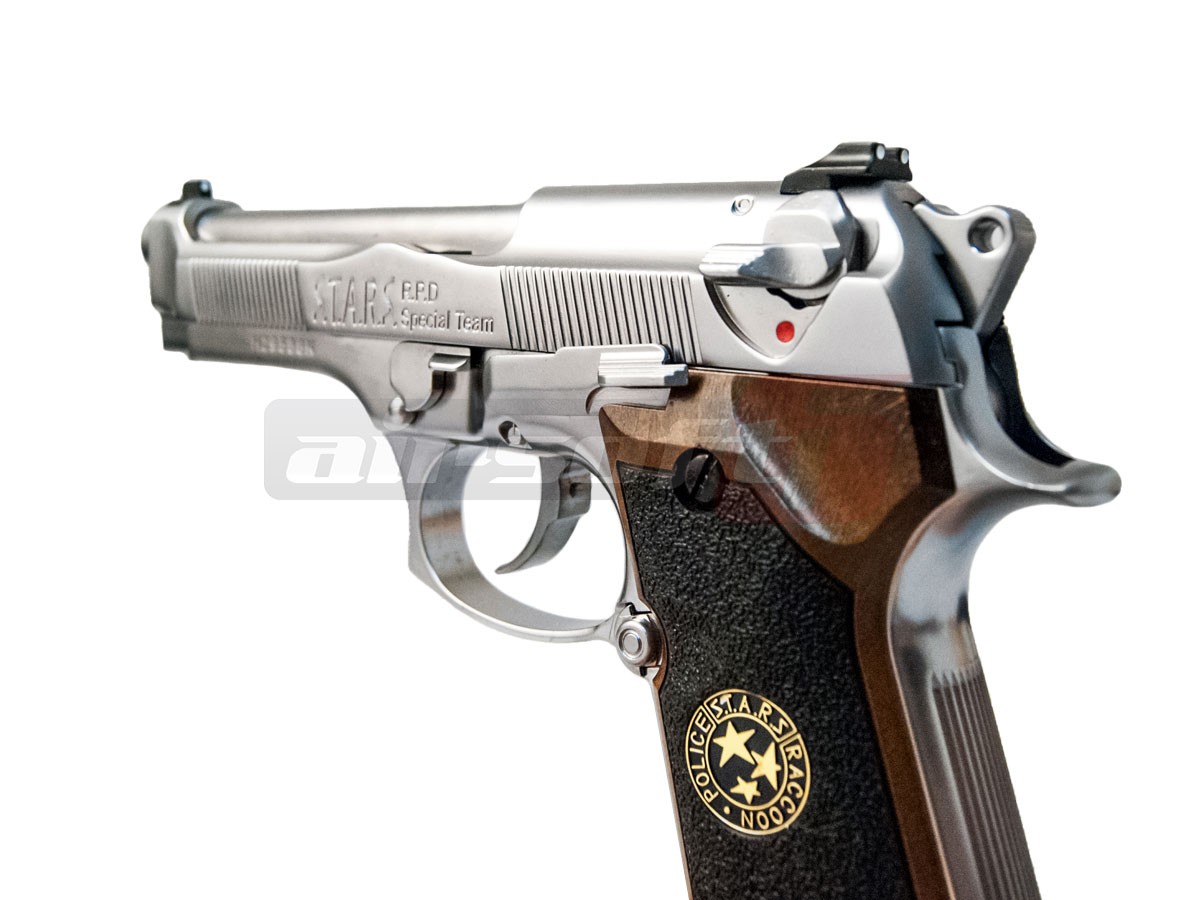 Daca nume precum RACCOON sau S.T.A.R.S. va aprind beculete atunci ar trebui sa puteti identifica usor aceasta replica. Povestea incepe odata cu seria Resident Evil si a departamentului de politie din orasul RACCOON, ce este fortat datorita cresterii continue a criminalitatii sa creeze o grupare speciala, destinata combaterii terorismului si altor mistere urbane. Aceasta echipa speciala se va numi S.T.A.R.S. pe larg Special Tactics and Rescue Service iar odata cu inceperea actiunii se vor lupta neinfricati cu hoardele de zombie generate de neatentia cercetatorilor UMBRELLA. Beretta M9 Biohazard poate fi observat ca arma secundara in echipamentul acestei super echipe si este la baza o platforma Beretta M9 personalizata cu insemnele departamentului de politie.