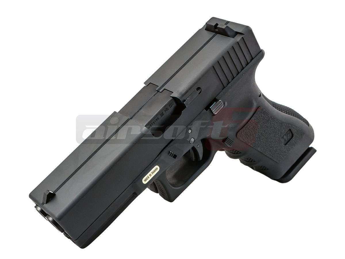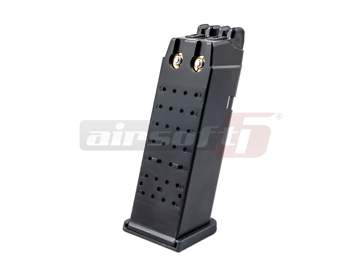 Aceasta replica este fabricata de WE, si contopeste 2 replici ale G17 generatia a 3-a. Partea inferioara este fabricata din nylon si prezinta in partea manerului o textura menita sa ofera o aderenta imbunatatita. Mansonul sau partea superioara este fabricata din aliaj de aluminiu. Incarcatorul replicii este si el special, reprezentand 2 incarcatoare de G17 contopite intr-unul singur. Exista corp comun pentru gaz dar 2 valve de evacuare si 2 siruri de incarcare cu bile.