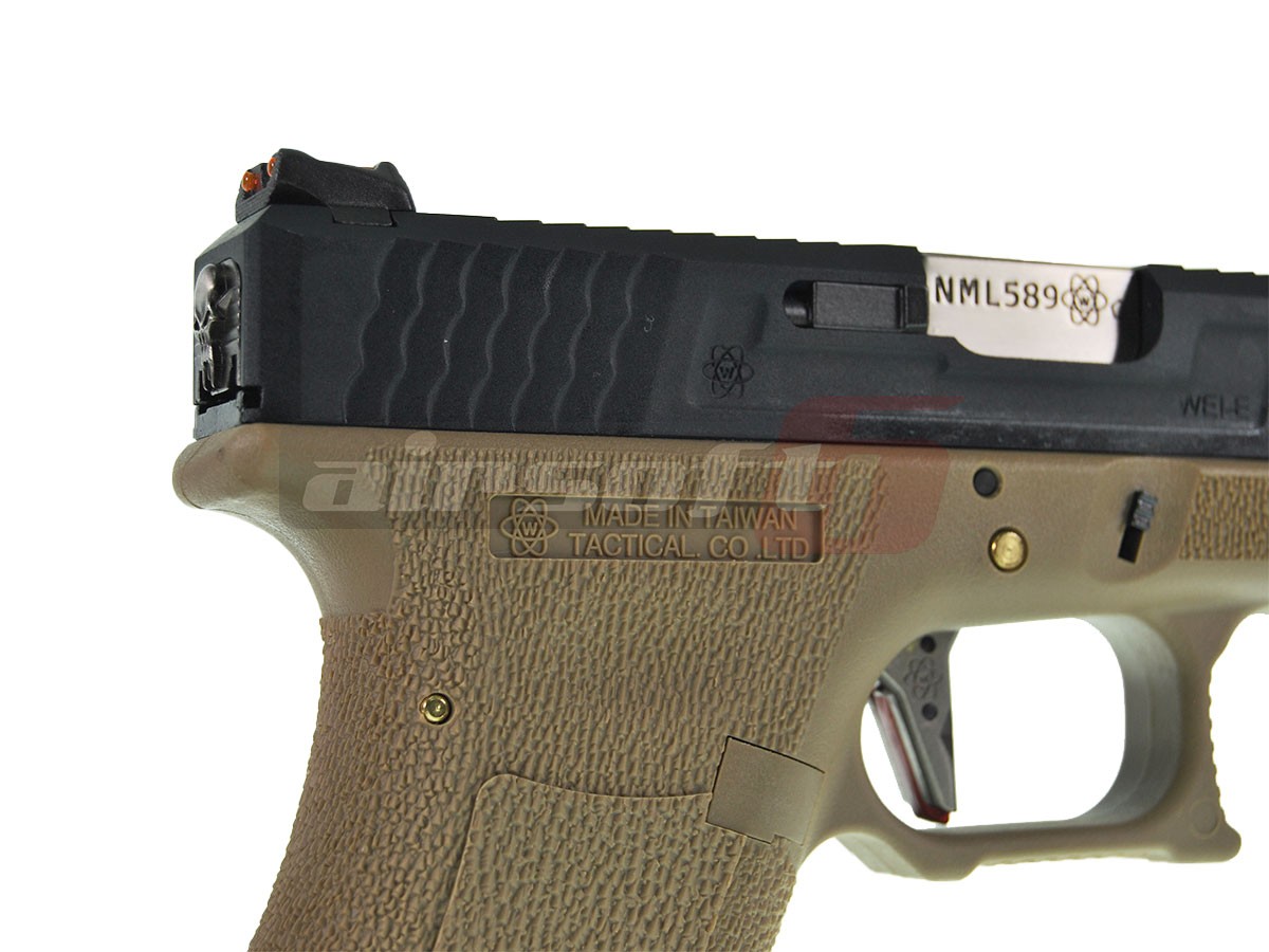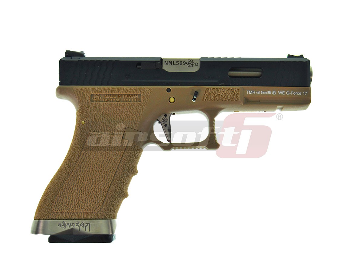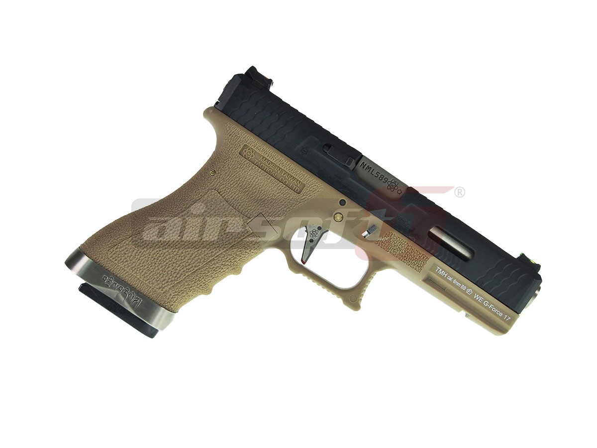 Aceasta replica este fabricata de WE, si copiaza generatia a treia a G17, varianta modificata pentru tir sportiv. Partea inferioara este fabricata din nylon si prezinta in partea manerului o textura menita sa ofera o aderenta imbunatatita. Mansonul sau partea superioara este fabricata din aliaj de aluminiu si prezinta un design deosebit cu un finisaj argintiu. Bravurile de pe manson, in afara de aspectul placut pe care il ofera au si scop practic, oferind o prindere ferma atunci cand este armat. Sistemul de ochire este fix dar este prevazut cu elemente luminiscente pentru a tinti mai usor. Teava externa este deasemenea din metal si este prevazuta in partea frontala cu filet pentru a putea fixa un amortizor extern. In partea inferioara a manerului exista un adaptor metalic ce usureaza introducerea incarcatorului in pistol.