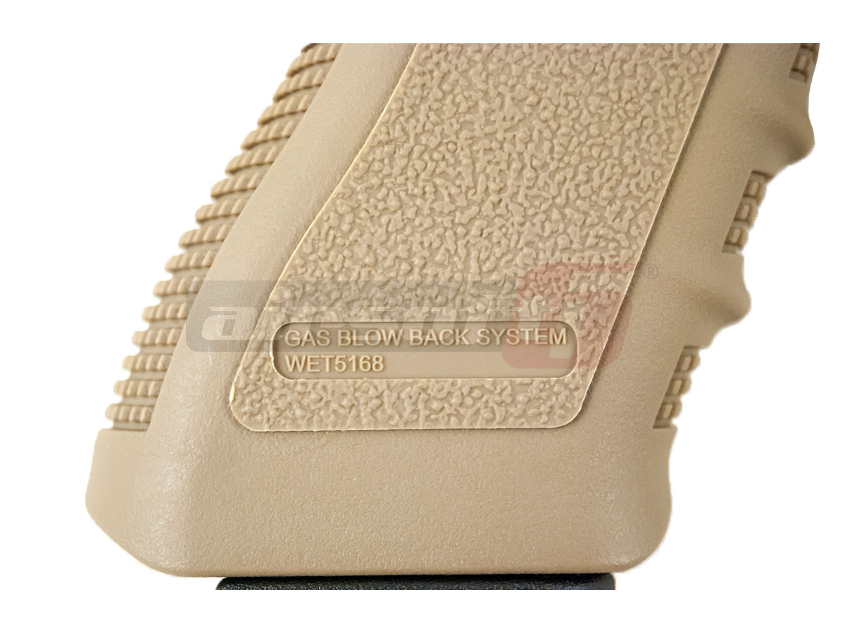 Aceasta replica este fabricata de WE, si copiaza generatia a treia a G17 Partea inferioara este fabricata din nylon si prezinta in partea manerului o textura menita sa ofera o aderenta imbunatatita. Mansonul sau partea superioara este fabricata din aliaj de aluminiu. Bravurile de pe manson, in afara de aspectul placut pe care il ofera au si scop practic, oferind o prindere ferma atunci cand este armat. Teava externa este deasemenea din metal si este prevazuta in partea frontala cu filet pentru a putea fixa un amortizor extern.