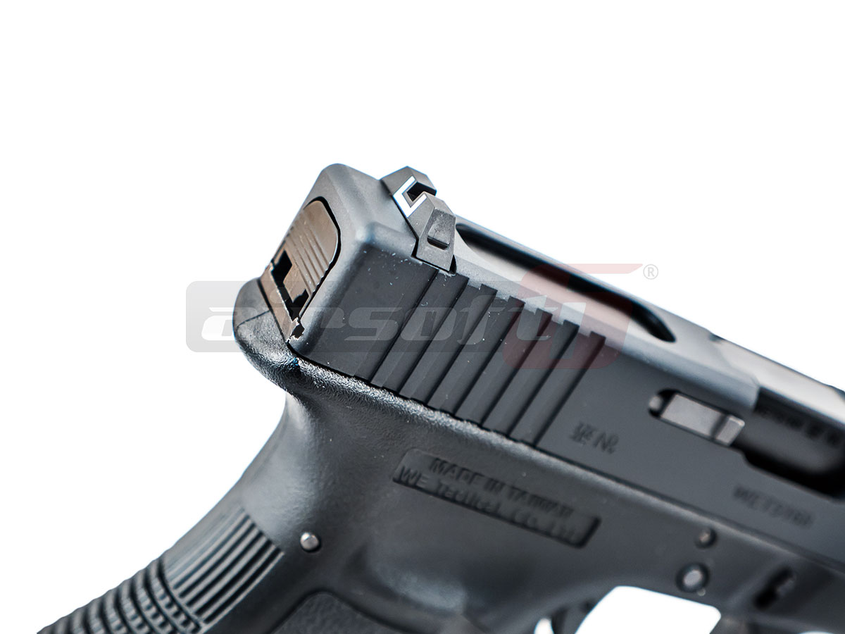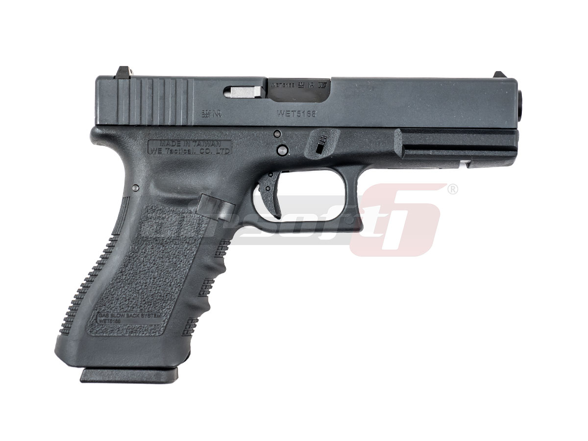 Producatorul WE a replicat G18C pastrand elementele principale ale armei adevarate. Slide'ul sau culata pistolului este realizata din metal iar partea inferioara este realizata din plastic ABS.Selectorul de tir se poate actiona cu slide-ul in pozitia normala. Comenzile acestui pistol sunt asemanatoare armei adevarate. Sistemul de dezansamblare este in partea din fata a replicii si necesita actionare ambidextra. In partea stanga exista butonul pentru eliberarea incarcatorului si butonul pentru eliberarea mansonului atunci cand munitia este terminata. Sistemul de ochire nu permite reglarea lui dar este corect aliniat si astfel, eficient.