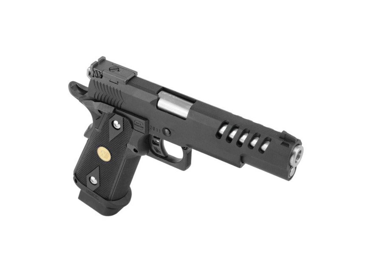 WE Hi-capa 5.1 K replica cu mici modificari STI 2011 tactical 5.0. Este construit in intregime din metal si toate elementele specifice hicapa sunt unde trebuie sa fie, piedica activa situata pe maner si siguranta pentru cocos, specifice clasicului 1911. Un avantaj oferit de acest design este ca odata avariata o anumita componenta aceasta poate fi inlocuita individual datorita multitudinii de piese existente pe piata.