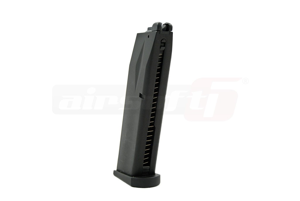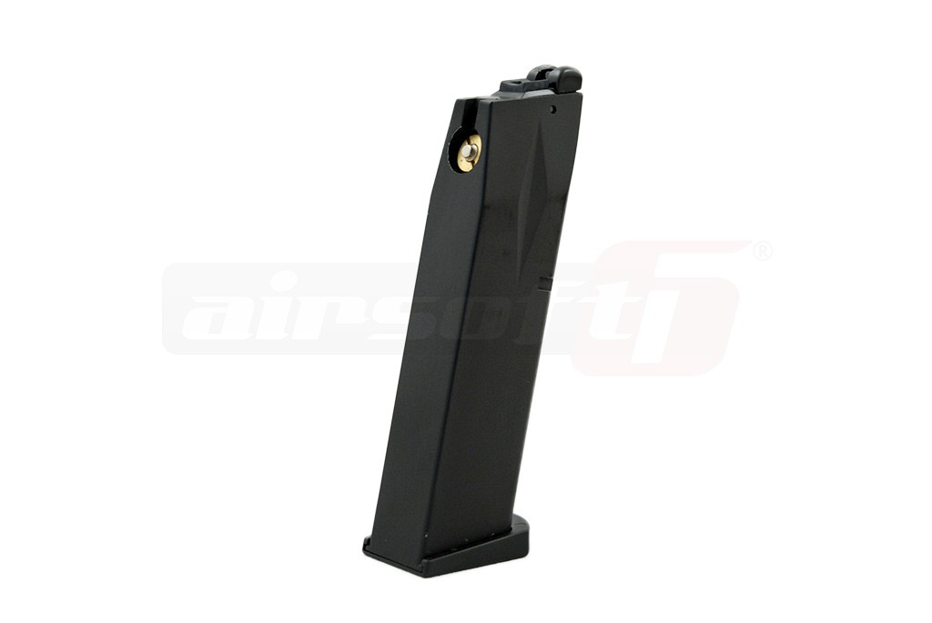 Incarcator produs de catre WE pentru pistoalele de airsoft seria Beretta M9. Acest incarcator functioneaza pe baza de CO2 si este recomandata utilizarea lui doar cu replicile destinate functionarii si pe baza de CO2. Este construit din metal iar gura de alimentare cu bile este din plastic. Capacitatea incarcatorului este de 25 de bile de 6mm.
