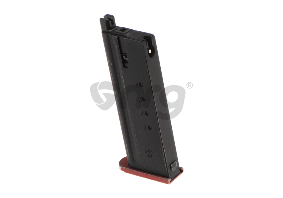 Incarcator produs de catre WE pentru platforma .50AE. Acest incarcator poate fi folosit cu gaz Green Gas sau alte variante de gaz cu propietati asemanatoare.Este construit din metal iar gura de alimentare cu bile este din plastic.
