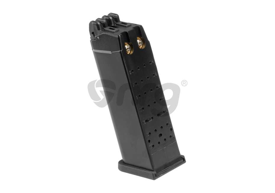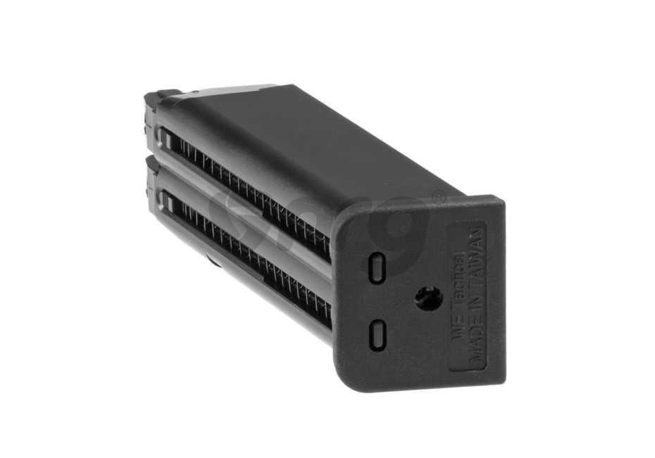 Incarcator produs de catre WE pentru platforma G17 Dual Barrel. Acest incarcator poate fi folosit cu gaz Green Gas sau alte variante de gaz cu propietati asemanatoare.Este construit din metal iar gura de alimentare cu bile este din plastic.