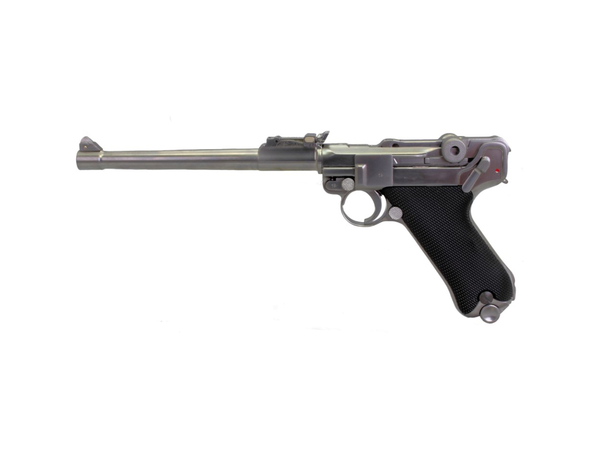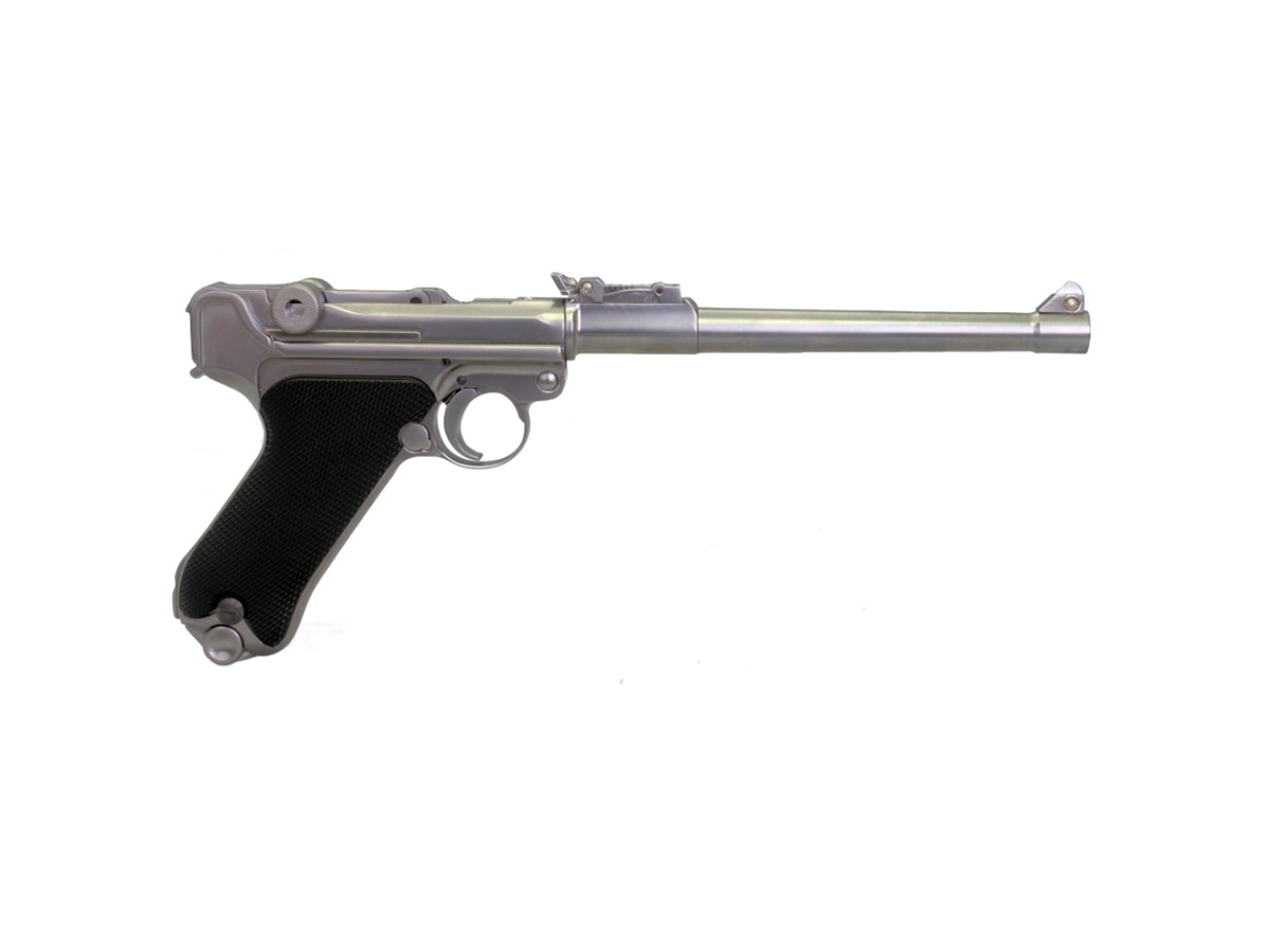 Replica P08 8 inch Silver lansata de WE din Taiwan, are un design simplu, nimimalist, dar care atrage cu siguranta atentia. Replica P08 oferita de WE are dimensiune armei reale. Lungimea replicii este de 218 mm si o greutate de 830 g. Materialele folosite sunt de calitate superioara. Pistolul este fabricat total din metal, cu exceptia manerului, care este fabricat din ABS. Replica are o precizie excelenta. Asemenea pistolului adevarat, aceasta replica airsoft este prevazuta cu recul. Manerul este fabricat dintr-un material texturat menit pentru o prindere mai eficienta.