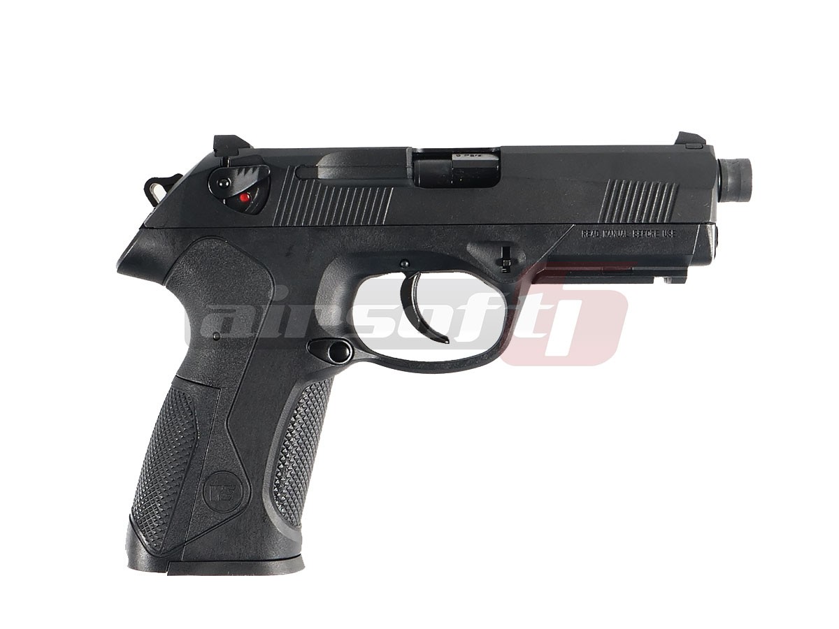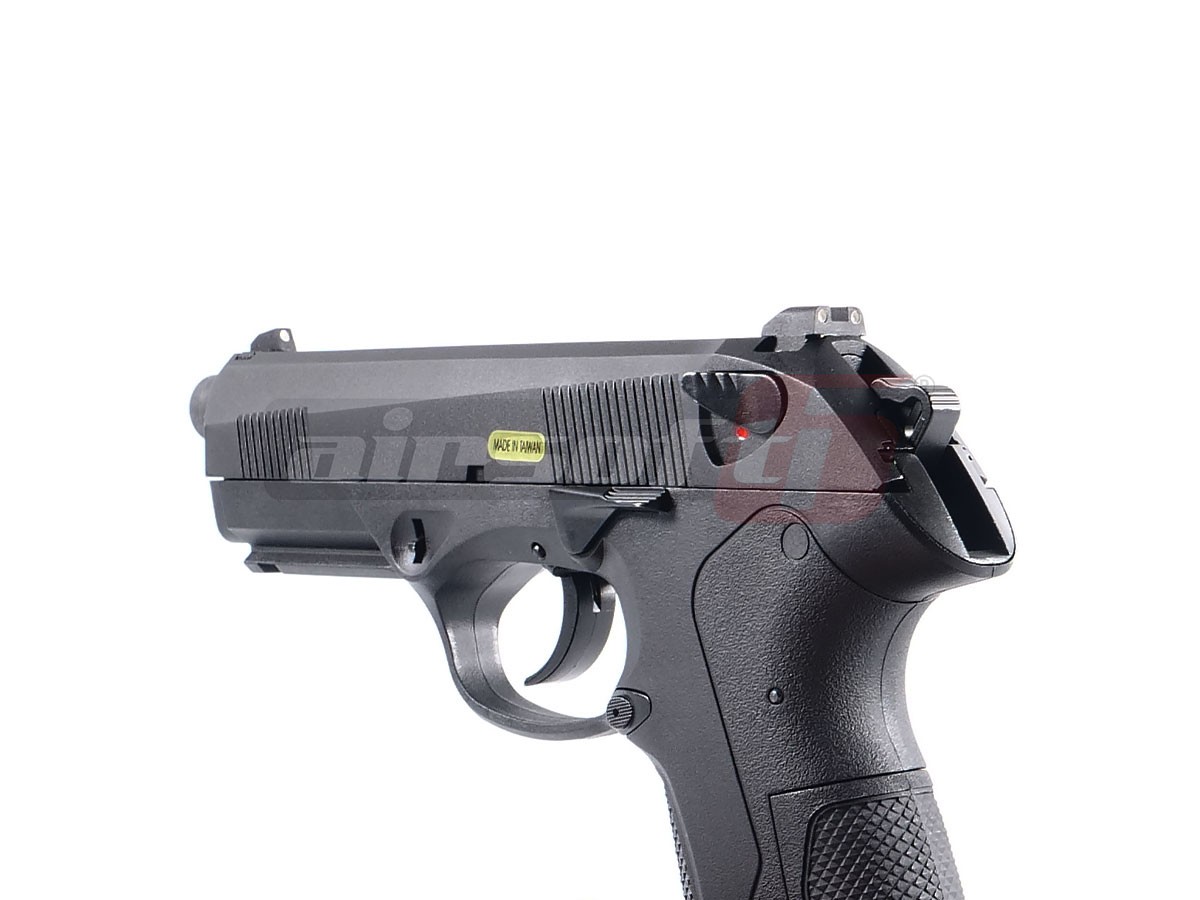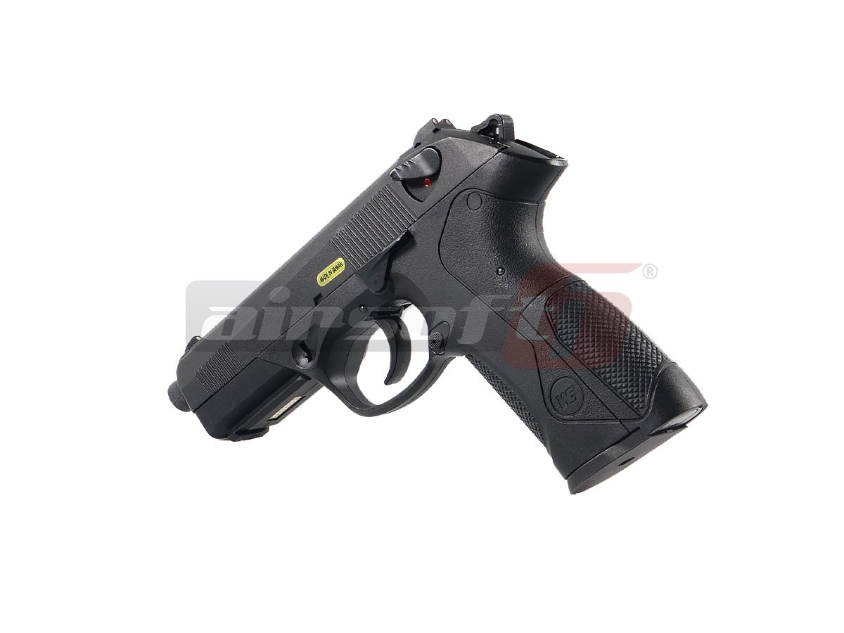 Replica de airsoft prezentata este fabricata de WE, calitatea materialelor, finisajul, performantele si fiabilitatea sunt exceptionale. Producatorul a replicat foarte atent modelul Beretta PX4 Storm. Mansonul replicii este fabricat din aliaje de aluminiu iar partea inferioara este fabricata din ABS, ceea ce nu este un lucru rau avand in vedere ca arma adevarata deasemenea este fabricata din materiale plastice. In partea frontala exista o sina standard ce permite atasarea dispozitivelor precum lasere, lanterne sau altele. putin mai in spate exista sistemul de indepartare a slide-ului (mansonul), slide catch-ul si mag-catch-ul sunt situate in partea stanga a replicii de airsoft.