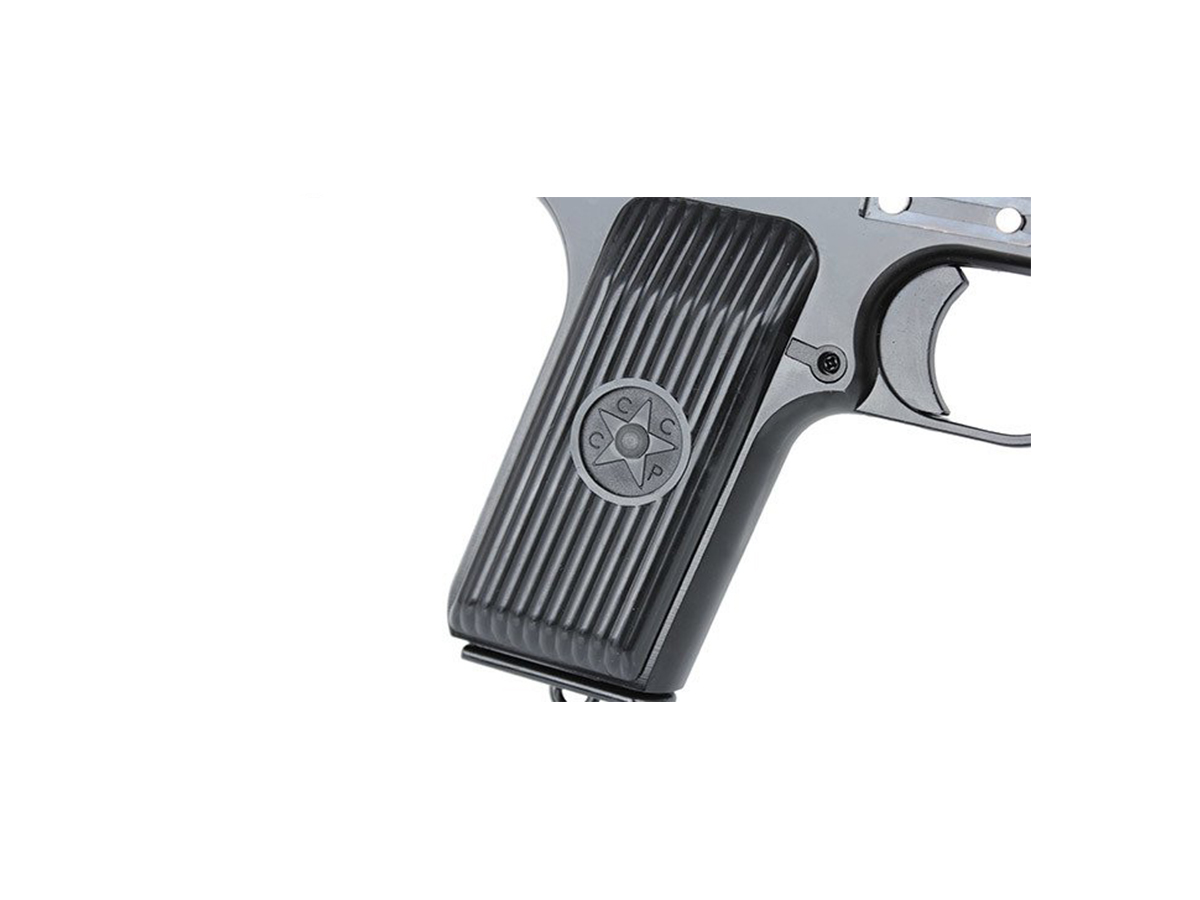Replica este fabricata in intregime din metal. Preselele sunt din plastic si prezinta marcajele sovietice. Butonul pentru eliberarea incarcatorului este pe partea stanga, deasemenea si slide-catch-ul. Asemenea armei adevarate, acest pistol este semi-automat, insemnand ca pentru fieare apasare a tragaciului este actionata o bila si alimentata urmatoarea. Sistemul de ochire este fix dar bine aliniat. In parta stanga jos, exista un sistem de prindere a cordelinei de siguranta.