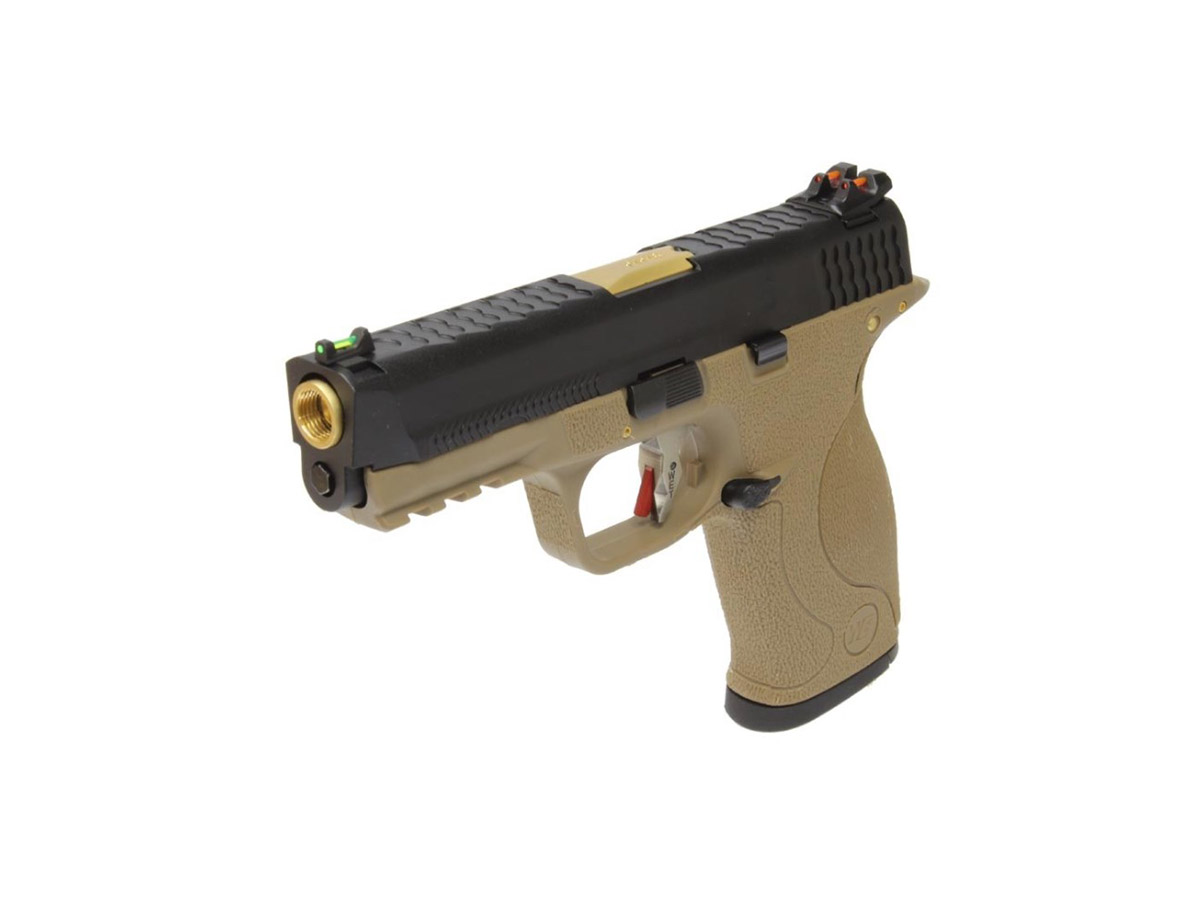 Replica este livrata cu un incarcator de 21 bile. M&P 9 functioneaza pe baza de green gas. Va recomandam sa utilizati green gas si bile de calitate superioara pentru performante optime si pentru buna functionare a replicii. Folosirea bilelor de slaba calitate, refolosirea bilelor si utilizarea unui gaz de slaba calitate poate afecta integritatea replicii.