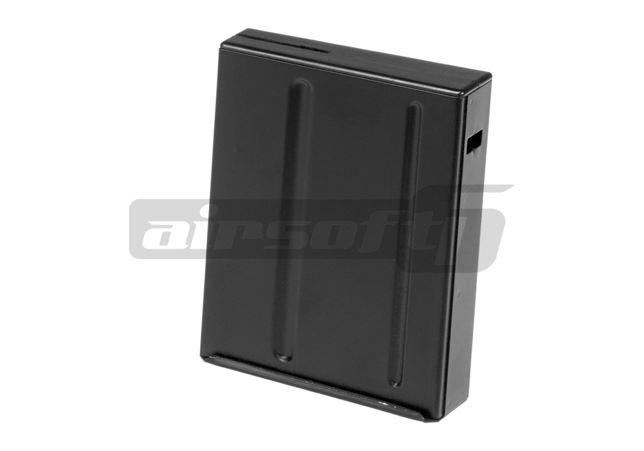 Acest incarcator este destinat modelului de sniper WELL MA400 dar si celorlalte surate de sniper bazate pe aceeasi platforma. Partea exterioara este fabricata din metal iar cea interioara din plastic si poate inmagazina pana la 40 de bile de 6mm. Functionarea lui este pe baza de arc iar alimentarea cu bile se realizeaza prin orificiul destinat alimentarii replicii.
